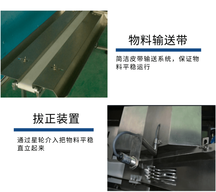 整理機對接枕式包裝機,專門針對du立小包裝產(chǎn)品,把包裝好的產(chǎn)品自動整理、排序、列隊,方便工人裝箱、裝袋 。應用范圍:適用于餅干、沙琪瑪、蛋糕、糖果等生產(chǎn)企業(yè)。同時,在化工、玩具、五金行業(yè)領域內(nèi)也被應用。